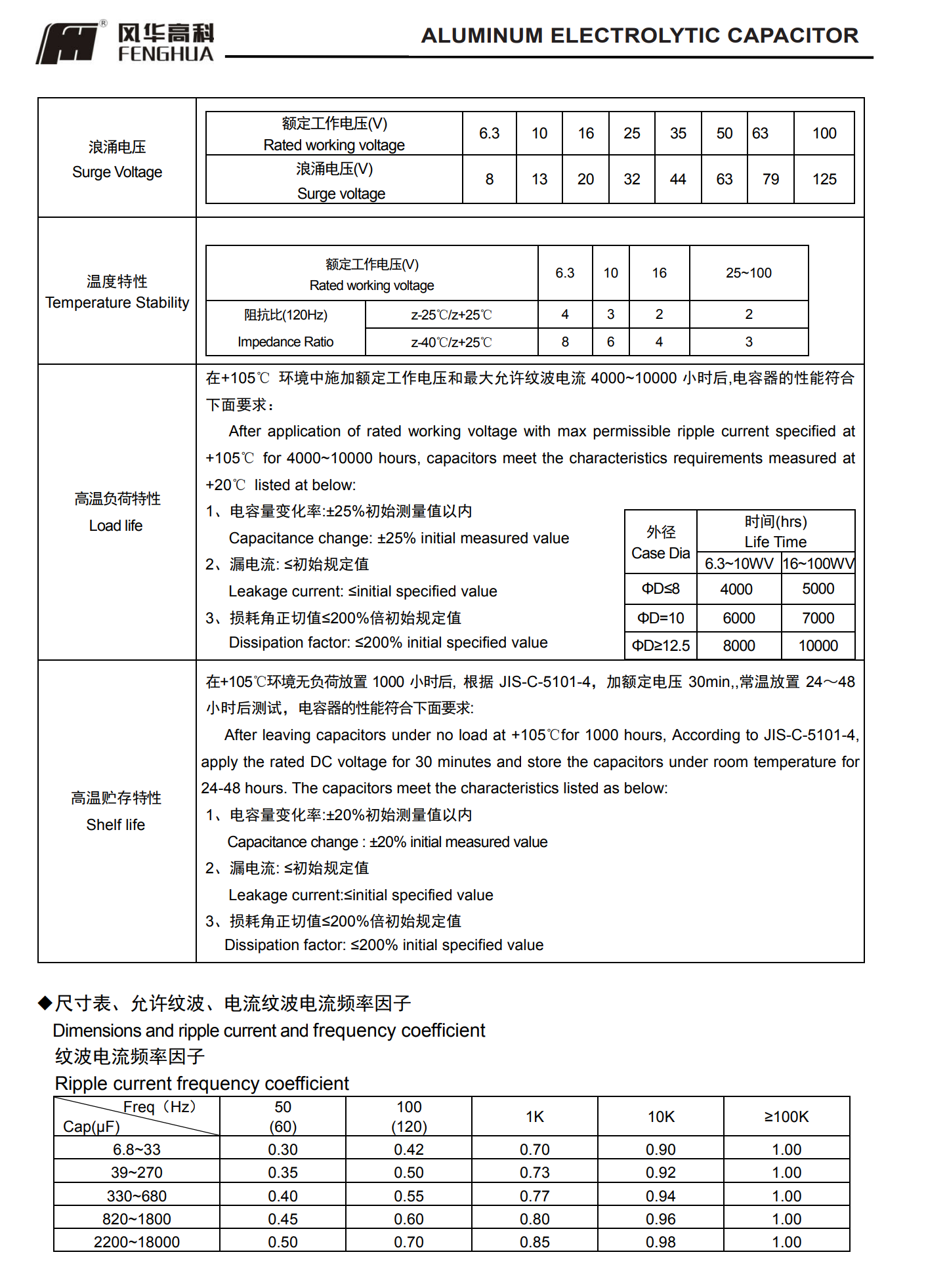 * 寿命: 105℃ 4000~10000 小时