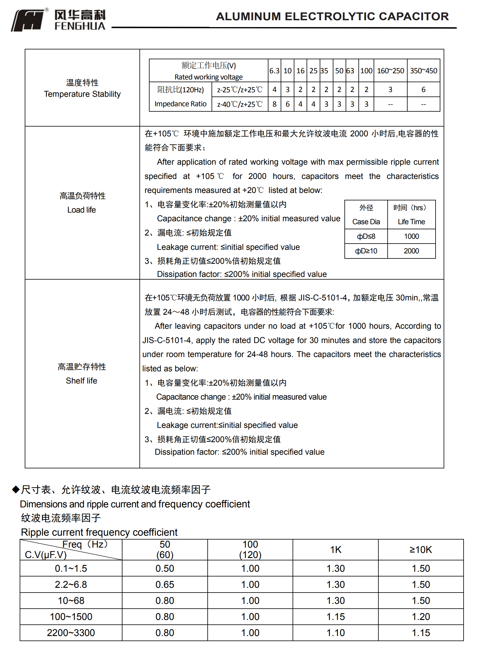 * 寿命: 105℃ 2000 小时